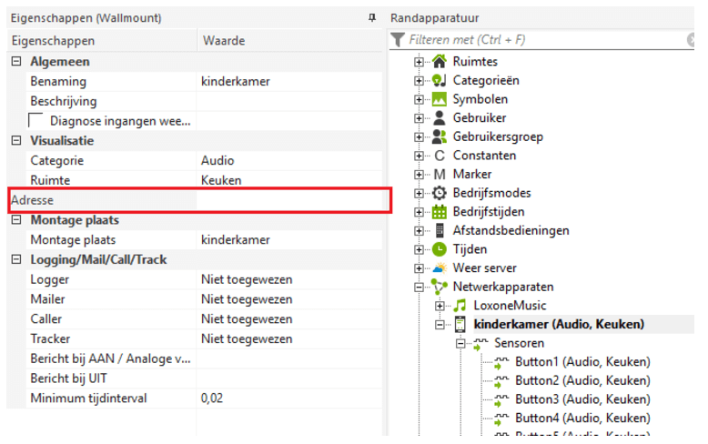 Bij de eigenschappen van de iRoom Controller kunt u nu het netwerkadres opgeven.