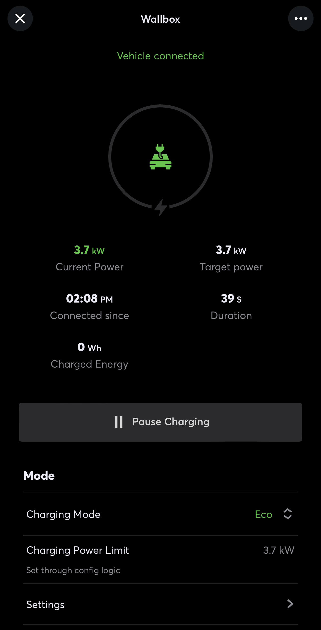 De Loxone Wallbox werkt in harmonie met andere functies binnen de Loxone-installatie, zoals het PV-systeem, om het herbruikbare energieverbruik te maximaliseren. De Loxone Wallbox biedt variabele oplaadsnelheden (zo laag als 1,38kW), dus er kan een drempelwaarde voor het overschot aan zonne-energie worden ingesteld (bijvoorbeeld meer dan 1,4kW) die het systeem activeert om de Wallbox op te laden met de opgewekte zonne-energie. Het Loxone gebouwbeheersysteem leidt dit automatisch rechtstreeks naar de auto, waardoor een duurzaam en gratis alternatief wordt geboden voor het exporteren van elektriciteit naar het elektriciteitsnet. Als de geëxporteerde stroom elke 60 seconden blijft toenemen, zal de Energiemanager de Wallbox vertellen om de laadsnelheid te verhogen om het eigen verbruik te maximaliseren. Deze gratis methode minimaliseert de kosten door het zelfverbruik te maximaliseren.