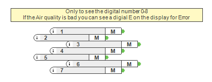Er is een 7-segments display met 7 relais die het aantal vrije slots aan de buitenkant laat zien. Het display toont “E”, als de garage vol is of de luchtkwaliteit slecht is (Error).
