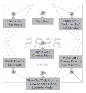 | Temperatuur | Indien gebruikt, schakelt de Touch Nightlight Air elke 5 seconden tussen temperatuur en tijd. | Analoog | -9..99 |
