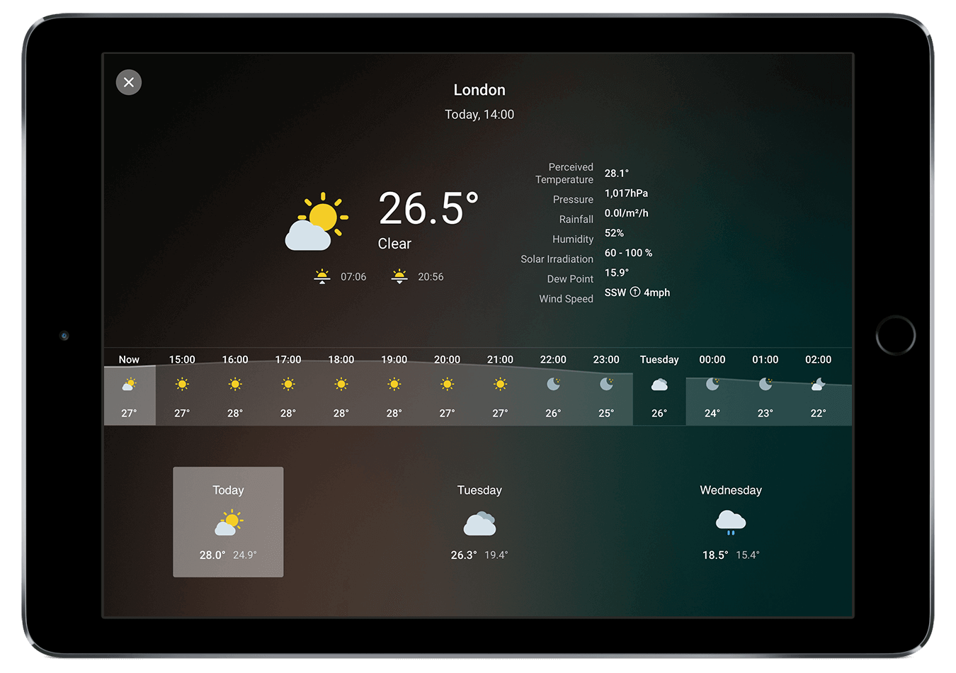 Al deze informatie is beschikbaar voor slimme beslissingen. Laat bijvoorbeeld de tuinberegening uitstellen wanneer er die dag regen wordt voorspeld. Of gebruik de stralingsgegevens van de zon voor de jaloezieën. In veel gevallen maakt de Weather Service de aankoop van een duur weerstation overbodig.