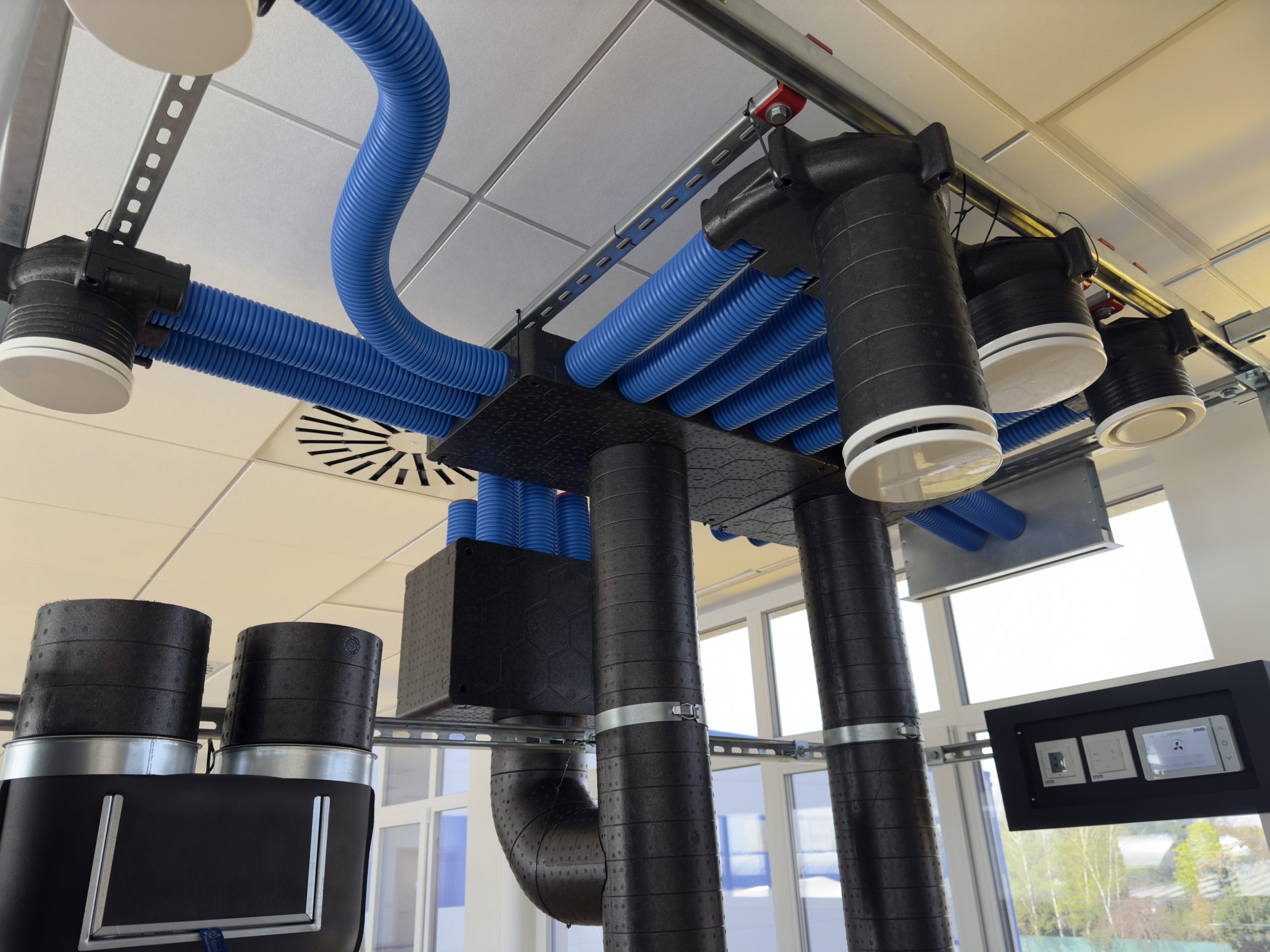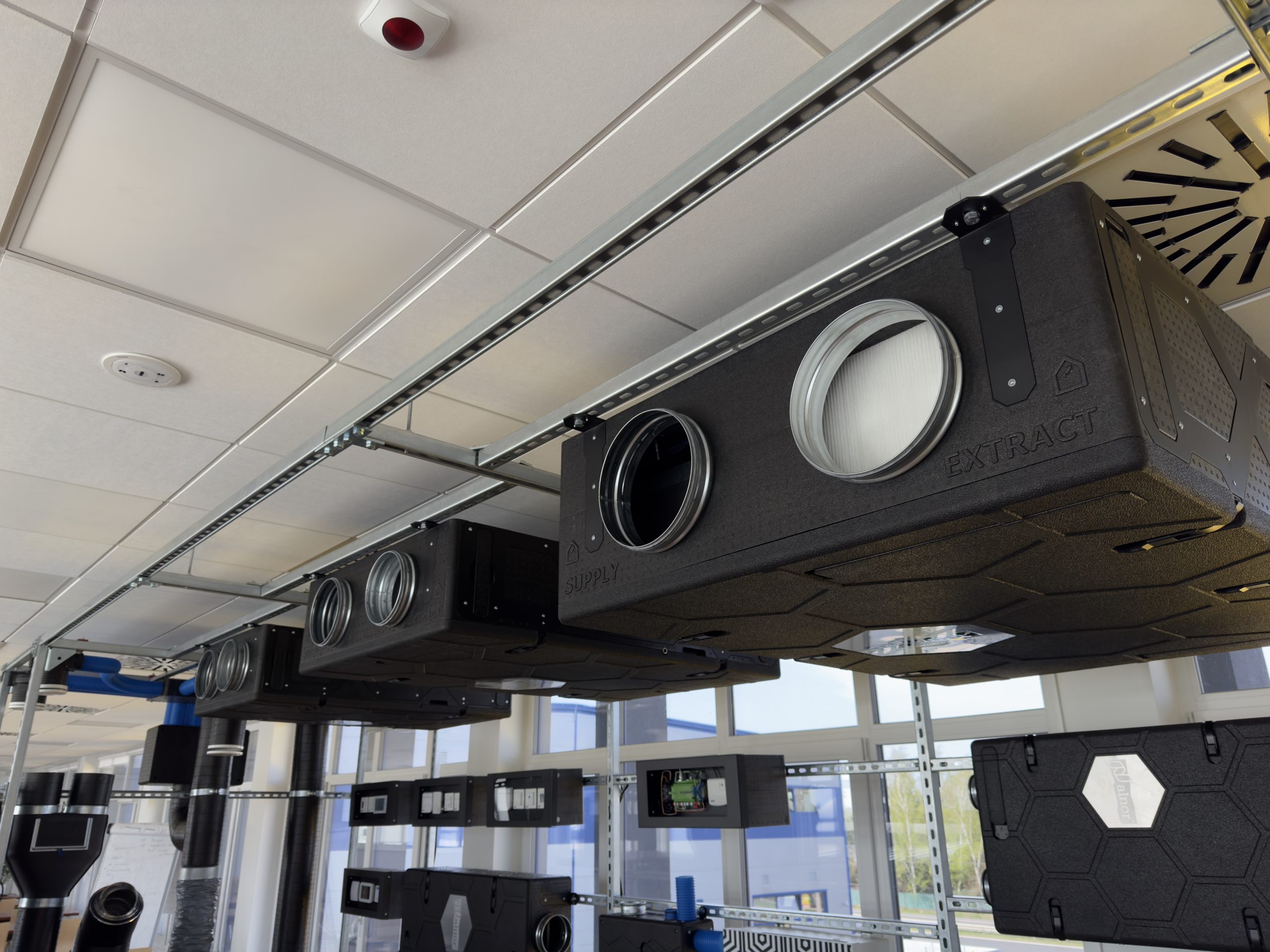 - podwieszane rekuperatory SlimAir (250–1000 m³/h),