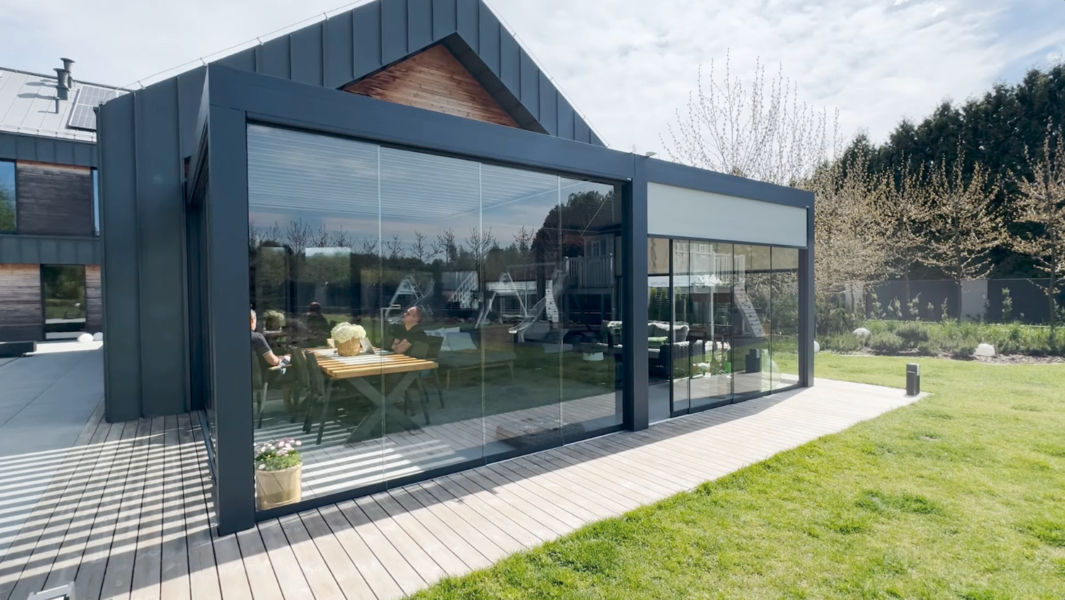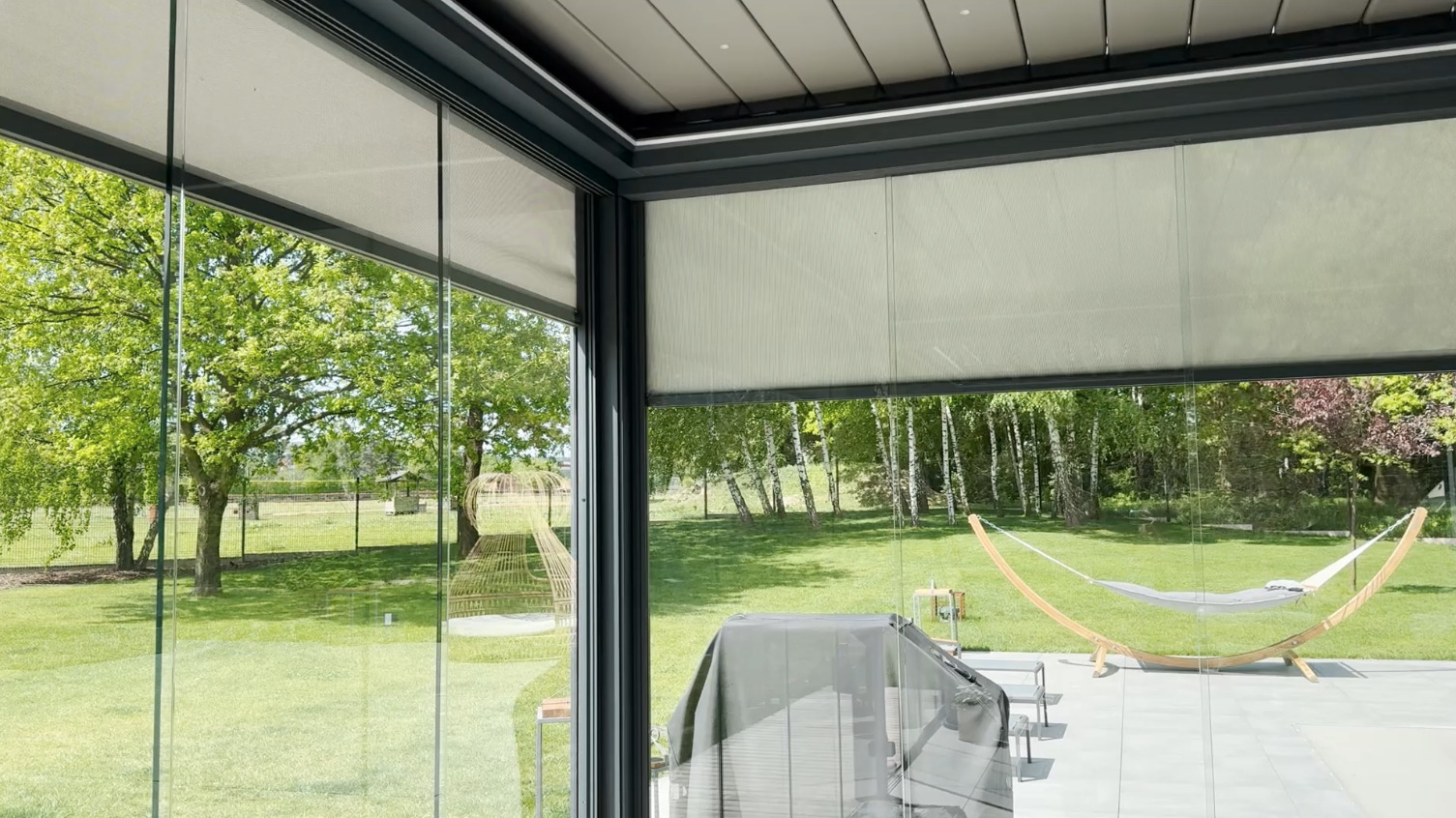 System został zintegrowany ze stacją pogodową Loxone, co pozwala na dynamiczne reagowanie pergoli na zmienne warunki atmosferyczne. Podczas silnego wiatru rolety automatycznie się podnoszą, a w razie słońca mogą się samoczynnie opuścić, aby ograniczyć nagrzewanie się wnętrza.