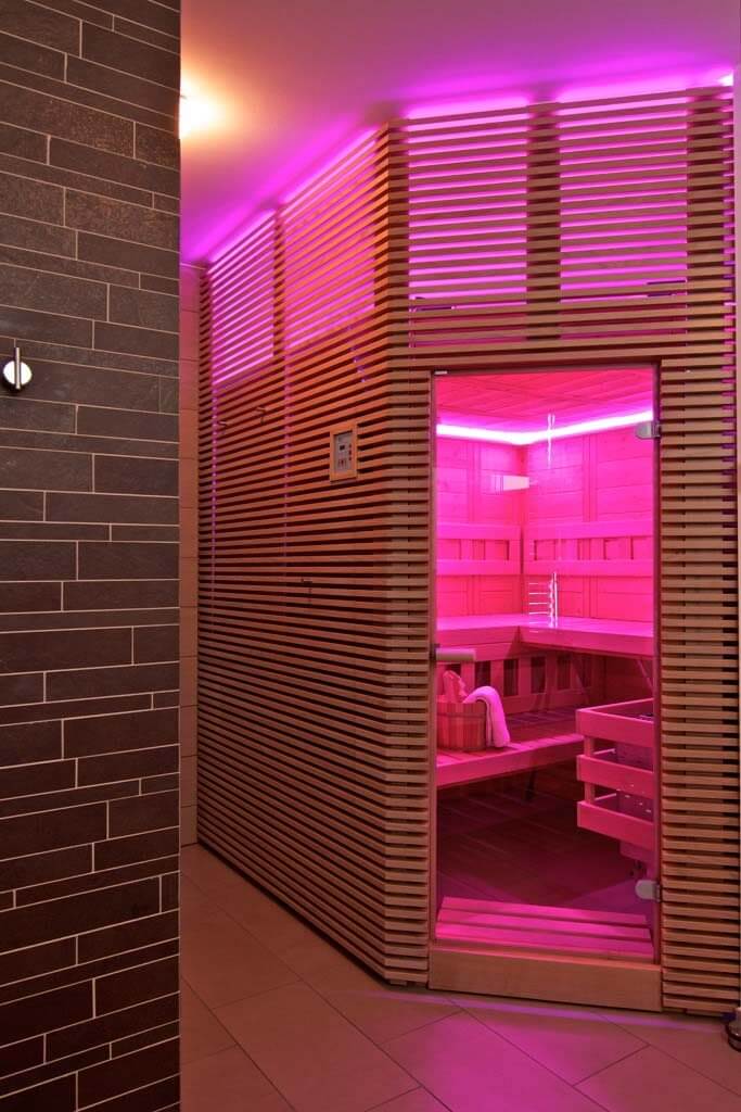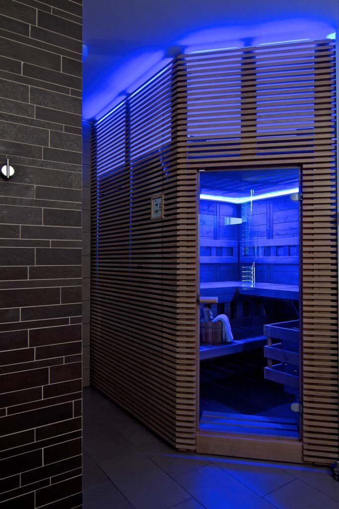 Połączenie sauny, oświetlenia i ogrzewania w całym pomieszczeniu