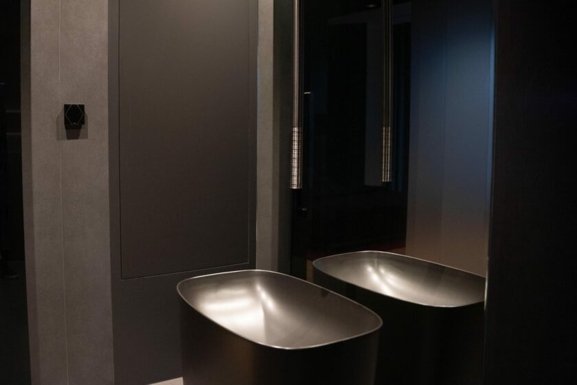 Również w łazience zastosowano Touch Surface – nawet stojąc pod prysznicem użytkownik może zmieniać ustawienia światła czy muzyki, osiągając maksimum relaksu. W mini saunie zastosowano klimatyczne oświetlenie w ramach koloroterapii – cyklicznie zmieniające się barwy taśm LED podświadomie wpływają na organizm i motywują go do lepszej regeneracji. Zamontowano również czujnik temperatury i wilgotności, dzięki czemu sauna jest zawsze optymalnie przygotowana na seans.
