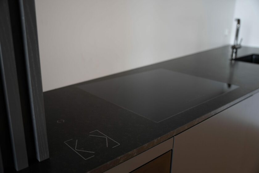 Pomocny w sterowaniu funkcjami w kuchni jest przycisk Touch Surface. Jest on praktycznie niewidoczny, a użytkownik może zmieniać ustawienia, np. oświetlenia, także mokrymi rękami podczas gotowania. Co więcej, pole kulinarnych zmagań znika za jednym kliknięciem, a goście nie widzą kulis powstawania posiłku – ruchoma ścianka ukryje brudne naczynia i sprzęty.