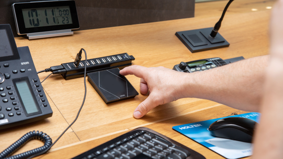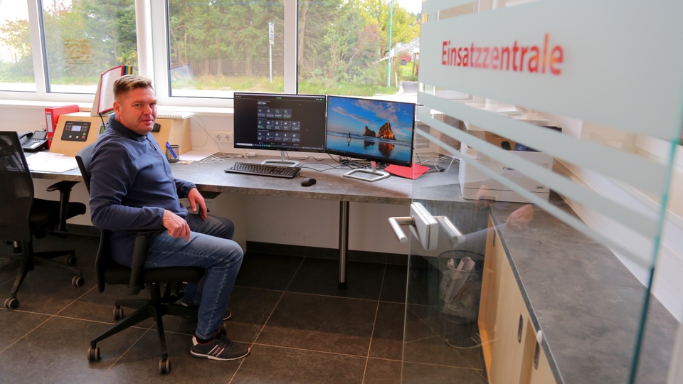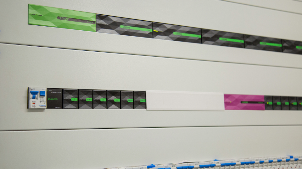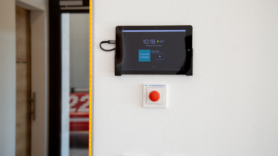 Dzięki zainstalowanej niedawno technologii Loxone, czynności manualne, takie jak włączanie światła czy zabieranie ze sobą klucza, stały się zbędne. Dostęp odbywa się za pomocą breloka NFC lub przez wprowadzenie kodu na klawiaturze kodowej NFC Code Touch. Światło włącza się automatycznie po wejściu do budynku, ponieważ zainstalowano kilka czujników obecności. W przypadku alarmu automatycznie otwierają się elektrozamki i zewnętrzne żaluzje, wyłącza się muzyka, oświetlenie w całym budynku zostaje włączone na 100%, a na drzwiach przeciwpożarowych uruchamiane są magnesy przytrzymujące. Następnie z opóźnieniem otwierane są również drzwi w hali. Gdy tylko operacja zostanie wykonana, pasek LED zmieni kolor na czerwony. Pierwsi przybyli strażacy naciskają przycisk przy wejściu, a kolor zmienia się na zielony. Dzięki temu jest on widoczny dla pozostałych zespołów.