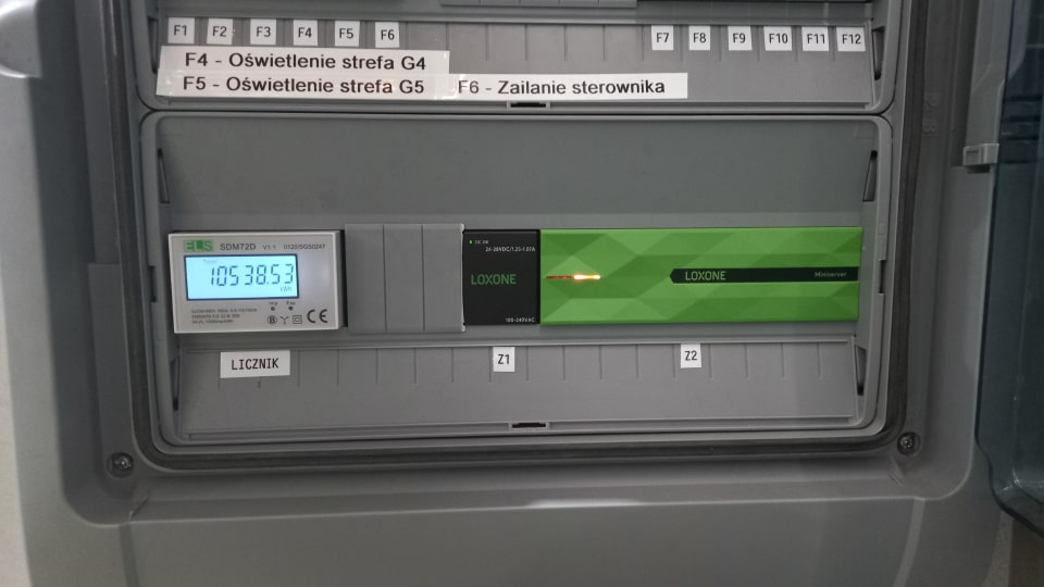 Halę podzielono na pięć stref, a każda z nich otrzymała sześć nowych lamp. W każdej strefie umieszczono trzy natynkowe czujniki obecności Loxone Tree, a całość uzupełniono o zasilacz 24V Loxone oraz oczywiście Miniserver.