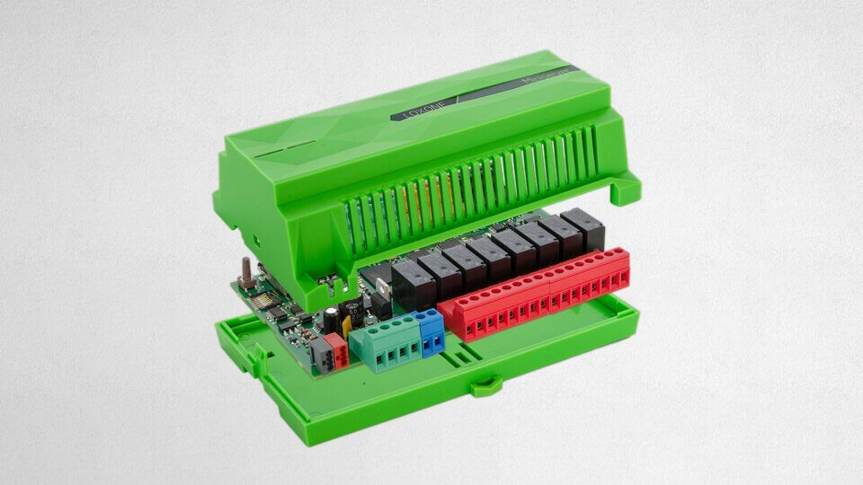 a Miniserver otrzymał szlachetną, specjalnie zaprojektowaną i wykonaną obudowę formowaną wtryskowo. Początkowo była w kolorze czarnym. Dopiero w 2013 roku Miniserver Loxone zmienił barwę obudowy na zieloną.