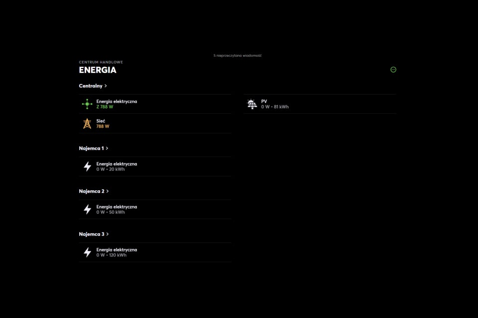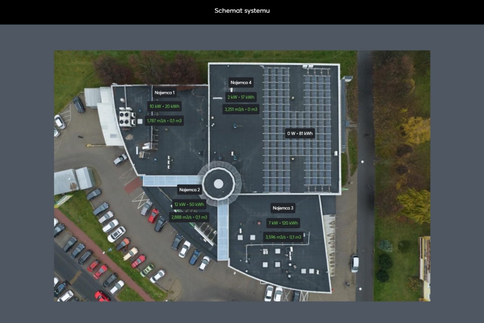 Oprogramowanie zawiera aplikację z wizualizacją przepływu energii i statystykami. Inwestor, zarządca lub administrator obiektu oraz najemcy mogą korzystać z tej samej aplikacji. Każdy ma ją dostosowaną do swoich potrzeb, z odpowiednimi uprawnieniami. Aplikacja zawiera zdalny dostęp do wszystkich funkcji (również bez dodatkowych opłat).