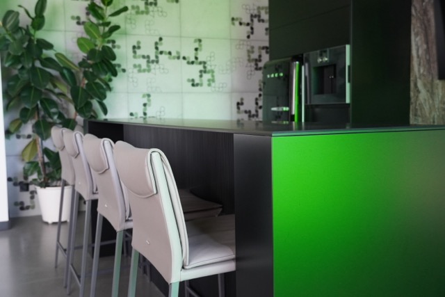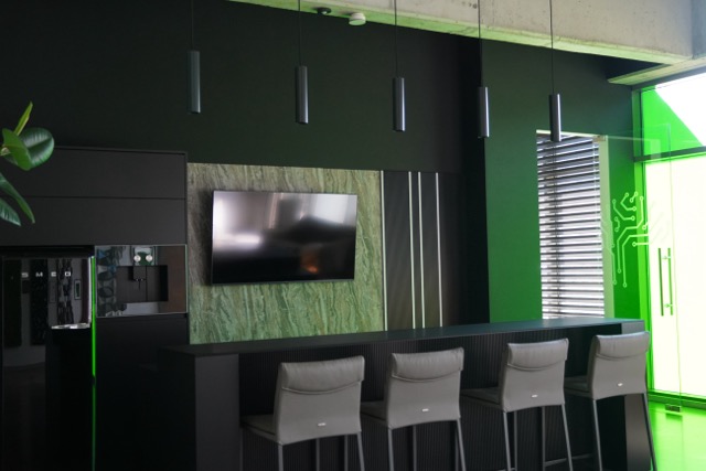 Showroom BKW System w Krakowie to miejsce, w którym spotyka się design, styl i automatyka. Wizyta w salonie pozwala klientom doświadczyć życia w inteligentnym domu oraz pomaga w wyborze automatycznych funkcji do projektu. Stylowa kuchnia z salonem to otwarta przestrzeń wypełniona automatyką i inspiracją. Usiądź wygodnie, napij się kawy i zobacz jak Twój dom i biznes mogą działać dla Ciebie. Z tyłu znajduje się również sala biurowa z dużym ekranem, by wygodnie omówić wszystkie szczegóły inteligentnego projektu.