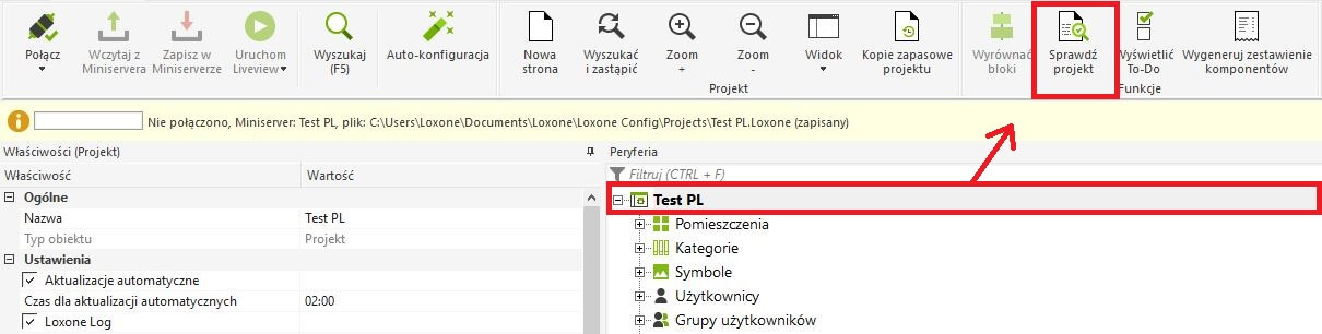 Aby uruchomić analizę, kliknij na nazwę projektu w drzewie Peryferia, a następnie kliknij przycisk „Sprawdź projekt” w górnym menu.