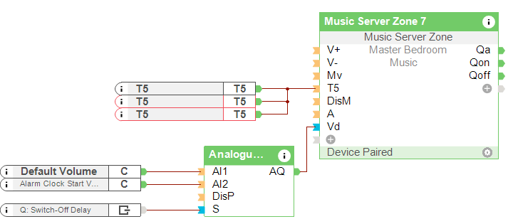 Dostęp do strefy Music Servera Loxone można uzyskać nie tylko poprzez blok funkcyjny „Music Server Zone”, ale także szereg poleceń sieciowych do sterowania serwerem muzycznym. Na przykład tak zwane polecenie strefowe do odtwarzania określonej playlisty można wysłać bezpośrednio.