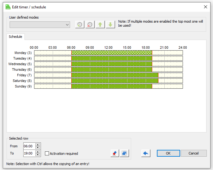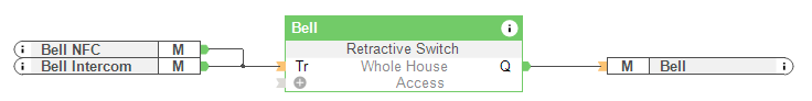 Przycisk dzwonka do drzwi (np. na klawiaturze NFC Code Touch lub wyjścia dzwonka na Interkomie) odtwarza dźwięk dzwonka we wszystkich wybranych strefach muzycznych (lub na standardowym dzwonku do drzwi). Harmonogram służy do określania godzin, w których dzieci będą spać. Naciśnięcie dzwonka do drzwi w tym czasie nie uruchomi dzwonka, ale aktywuje tylko wejście alarmowe na podłączonych sterownikach oświetlenia.