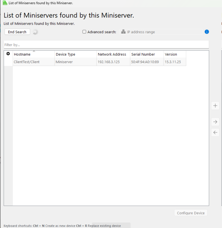 Wybierz żądany Miniserver, który ma zostać dodany jako klient i kliknij przycisk „+”.