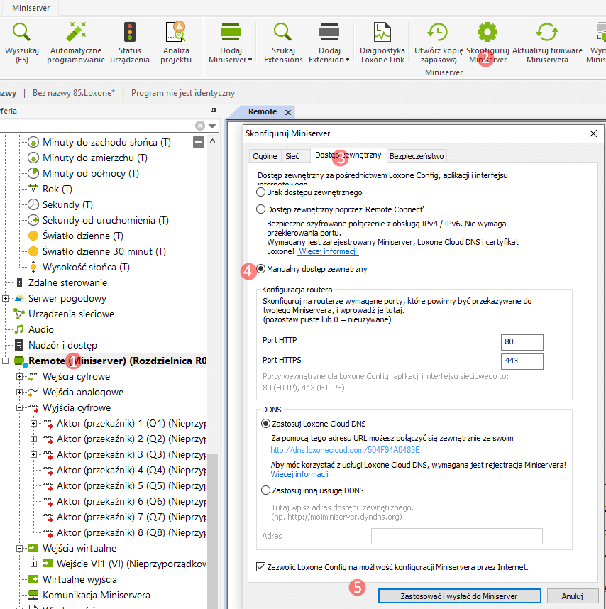 Zezwolić Loxone Config na konfigurację tego Miniservera przez Internet