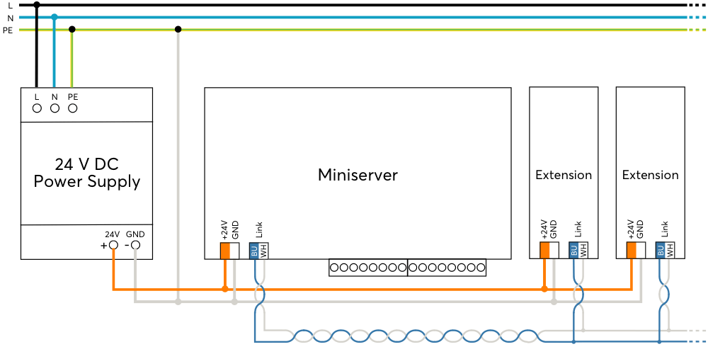 - Jeśli Miniserver jest używany bez rozszerzenia, Loxone Link nie może zostać zakończone.