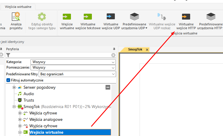 3. Używając „Wirtualne wejście HTTP rozkaz” dodaj wejścia, a następnie zmień nazwy np. na następujące: