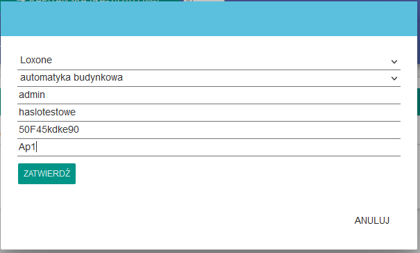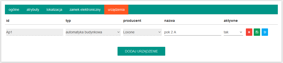 Klikamy ikonę >”dodaj urządzenie” i uzupełniamy pola: