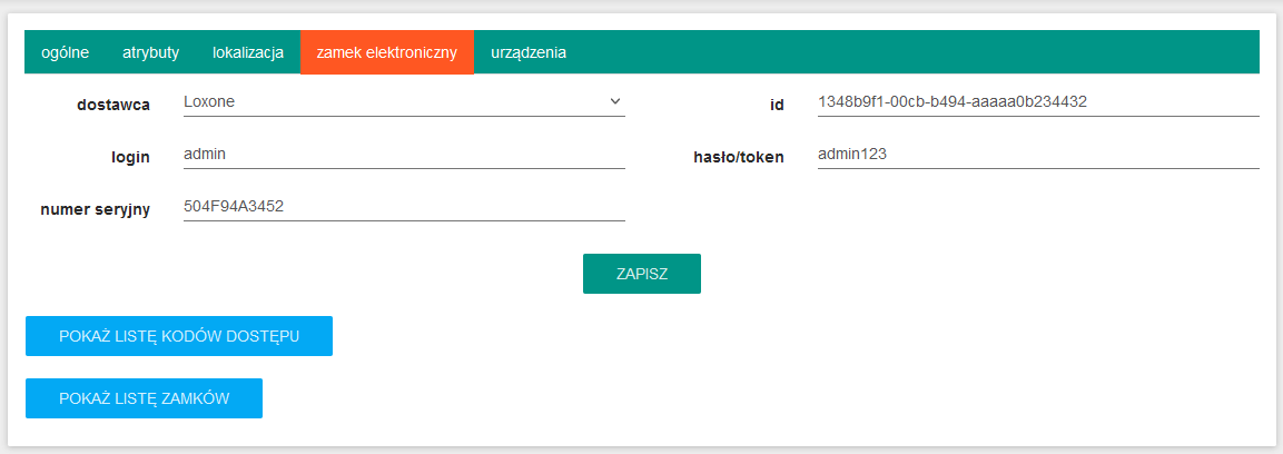 · id > tu wprowadzony będzie uuid grupy użytkowników dla tego zamka – klikamy poniżej > pokaż listę zamków i z listy jaka się wyświetli kopiujemy uuid przypisany dla wybranej grupy użytkowników, która ma mieć dostęp do usług lub klikamy wybieram