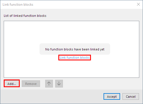 Najpierw klikamy blok, a następnie we właściwościach w sekcji Połączone bloki konstrukcyjne – „Wybierz”