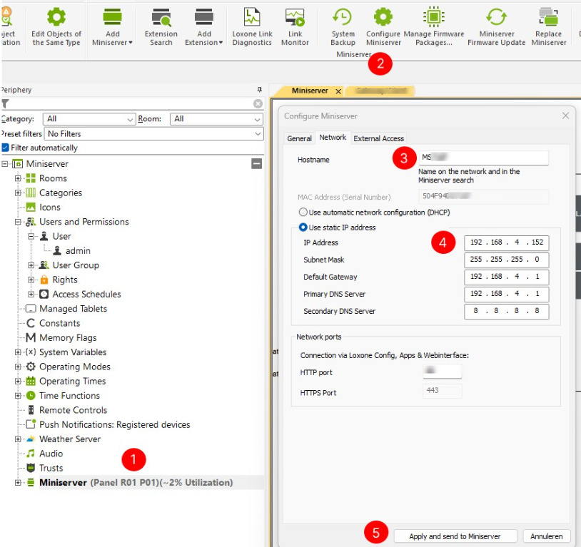 5. Następnie kliknij Zastosuj i wyślij do Miniserver.