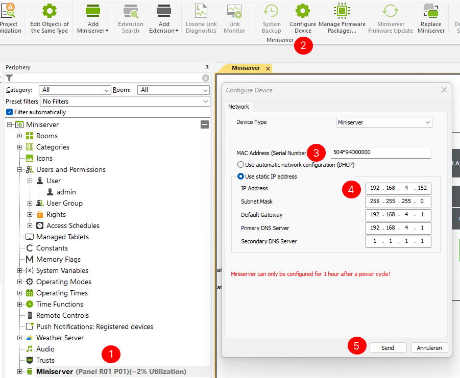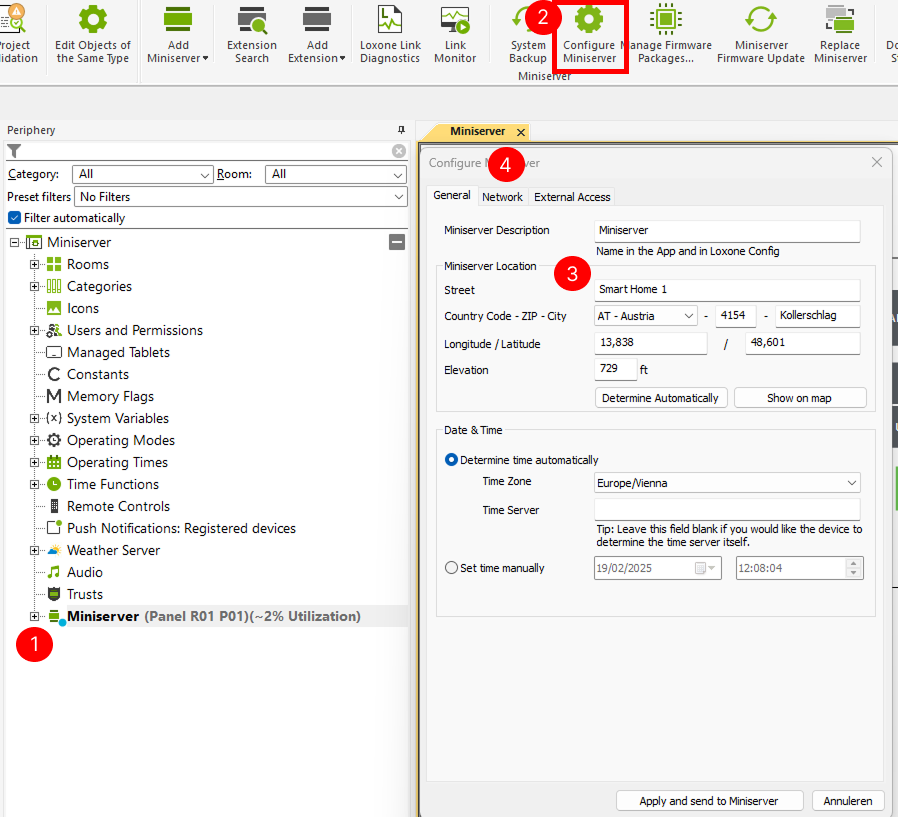 2. Następnie kliknij przycisk Skonfiguruj Miniserver na pasku menu.
