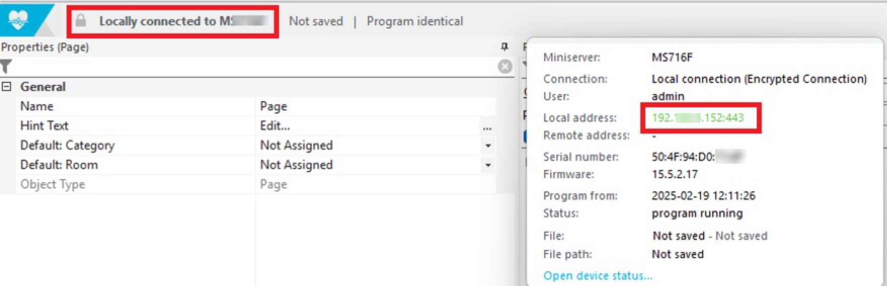 Wszelkie zmiany w konfiguracji Miniservera po początkowej konfiguracji można również wprowadzić, gdy połączenie z Miniserverem jest aktywne.