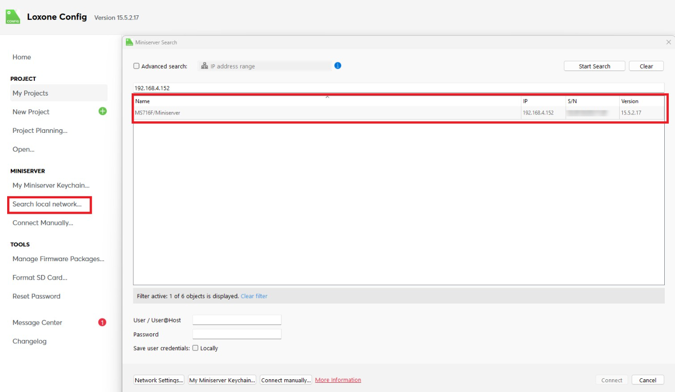 - Użyj skanera IP, aby przeskanować sieć w zakresie, w którym powinien znajdować się Miniserver.