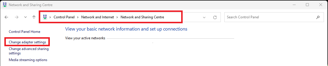 Aby to zrobić, przejdź do „Centrum sieci i udostępniania” w Panelu sterowania. Następnie kliknij „Zmień ustawienia adaptera” po lewej stronie: