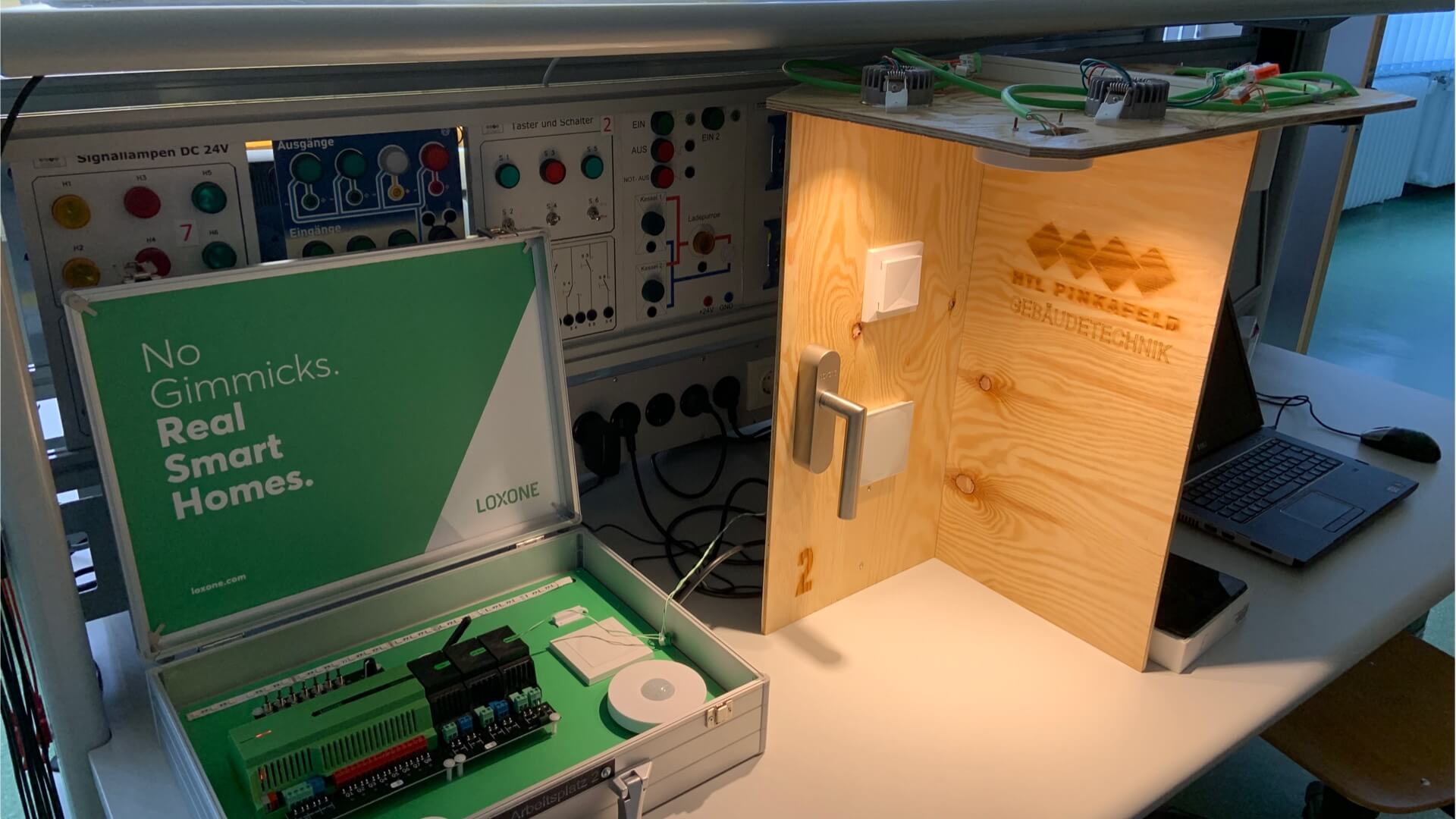 (Program edukacyjny Loxone nie jest przeznaczony dla elektryków i przedsiębiorstw, które wyposażają pomieszczenia szkoleniowe na potrzeby wewnętrznego lub komercyjnego programu kursów. Placówki oświatowe jak Wifi, BFI i izby rzemieślnicze, które organizują oficjalne egzaminy typu egzamin końcowy, egzamin czeladniczy i egzamin mistrzowski, mogą wyposażyć swoje stanowiska laboratoryjne w tym celu.)