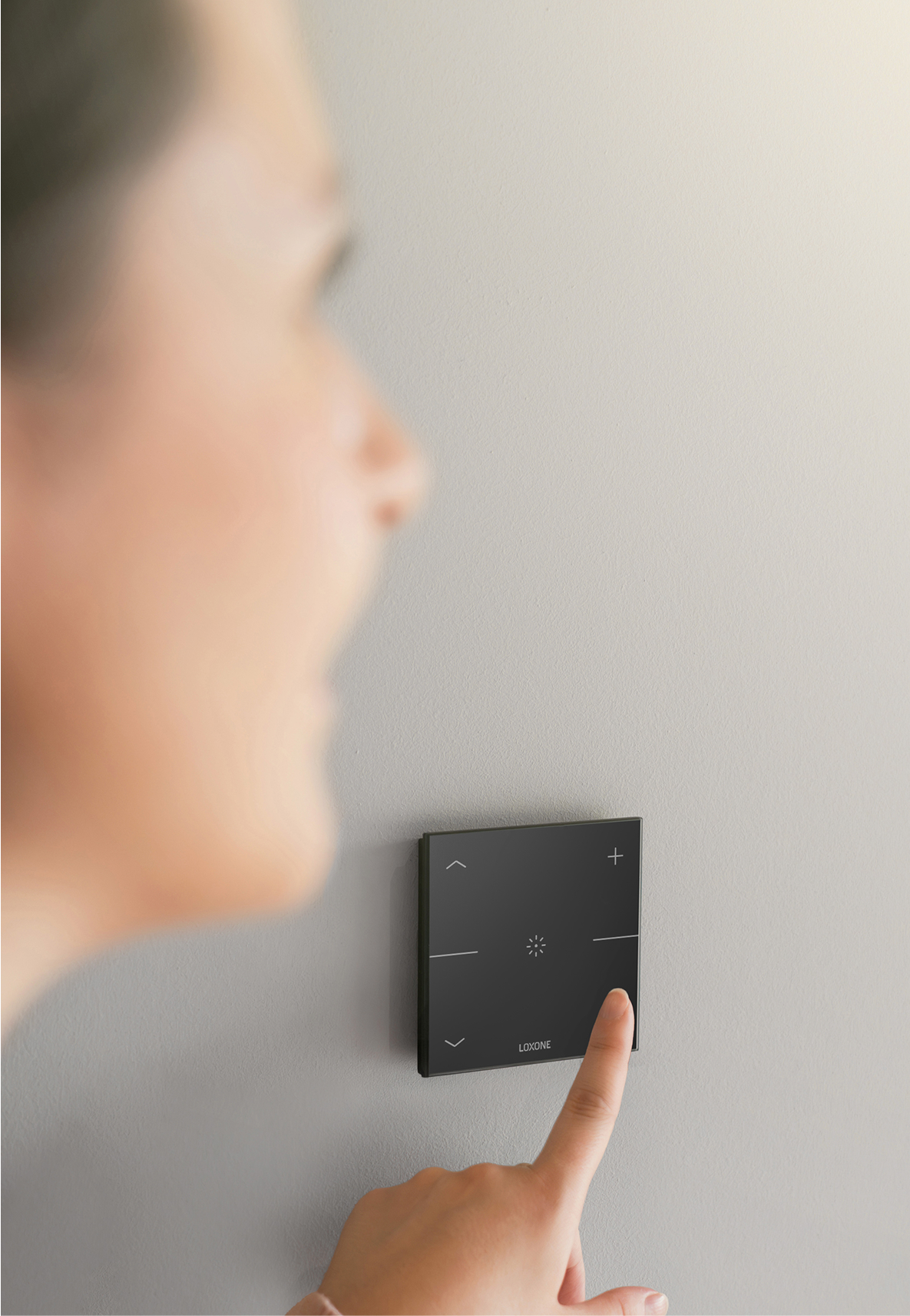 Sprawdzony standard przycisków Loxone zapewnia intuicyjne sterowanie dźwiękiem – wszystko w eleganckim, wysokiej jakości designie.