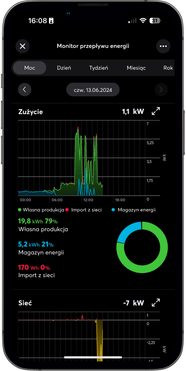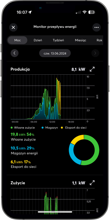 Wykres produkcji energii z PV to tylko punkt odniesienia. Dla najlepszych efektów wykorzystaj aplikację do fotowoltaiki po polsku, która w przejrzysty sposób wizualizuje przepływ energii w czasie rzeczywistym, umożliwia przeglądanie historii zużycia oraz statystyk, jak również identyfikację dalszego potencjału oszczędności.