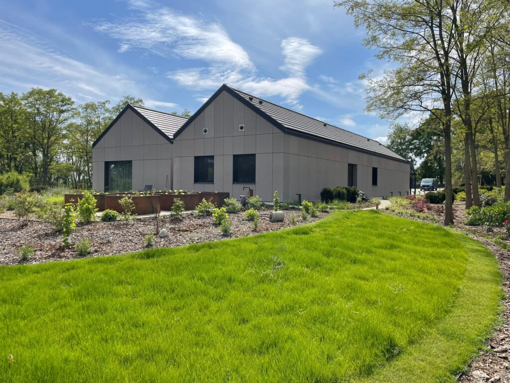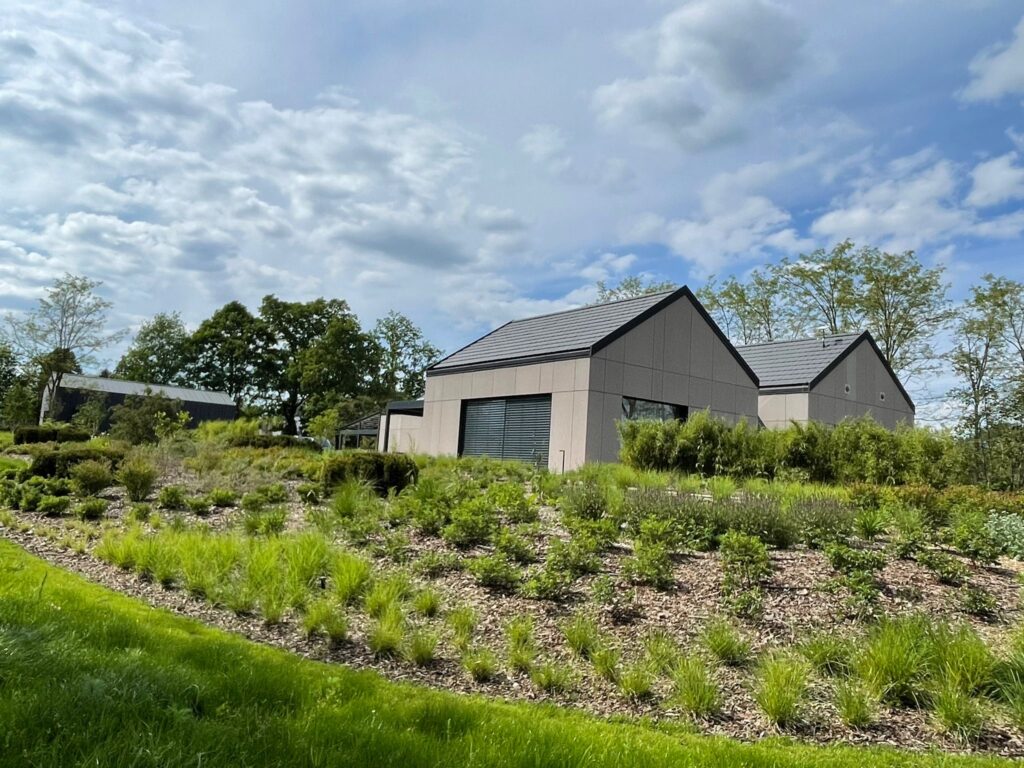 Wisienką na torcie jest przepiękny ogród, w którym nie zabrakło także sterowania Loxone. System podlewania wykorzystuje 3 zbiorniki o pojemności 10 tys. litrów wody deszczowej każdy. Uruchamiane są przez pompę ogrodową w zależności od tego, czy w danym zbiorniku jest woda. W razie braku wody deszczowej system przełącza się na pompę głębinową. Całość nadzoruje zainstalowana na dachu stacja pogodowa, która informuje system o opadach deszczu lub ich braku.