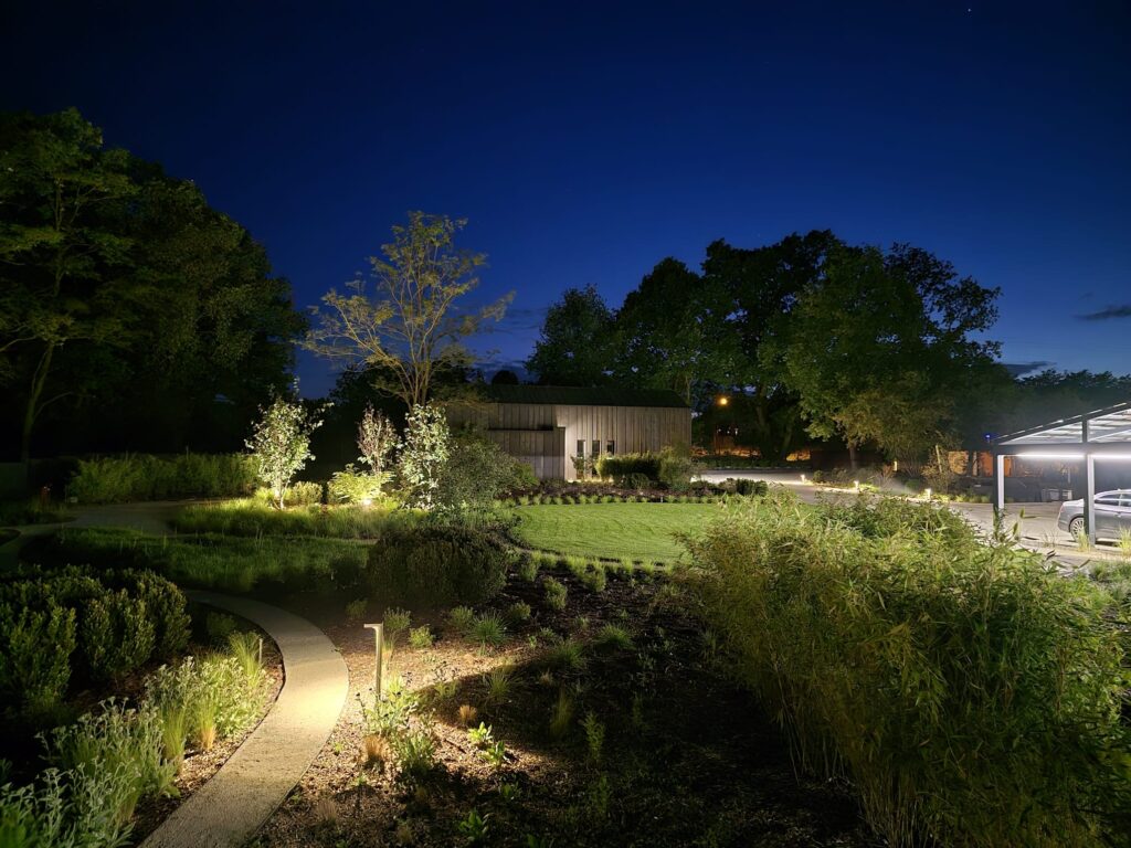 Our garden is also smart: watering depends on the weather and soil moisture, so that resources are used optimally. Intelligent outdoor lighting also provides atmospheric lighting and additional security.