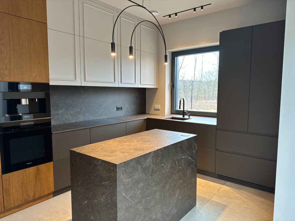 Projekt domu zakładał również jak najmniejsze straty ciepła i energii elektrycznej, dlatego nie mogło obejść się bez sterowania klimatem przez urządzenia Loxone. Dzięki Touch Pure CO2 mamy możliwość sterowania nie tylko światłem ale również zacienianiem, wilgotnością, świeżym powietrzem oraz audio. To dzięki niemu nasz zintegrowany system odzysku ciepła i wilgoci cały czas czuwa, żeby powietrze w domu było zawsze świeże. Głowice od ogrzewania są wykorzystane tak, żeby temperatura była w idealnym zakresie ustawionym przez użytkownika. Całość domyka system zacieniania żaluzjami, który w razie potrzeby zamyka lub otwiera lamelki w miarę zapotrzebowania na światło słoneczne.