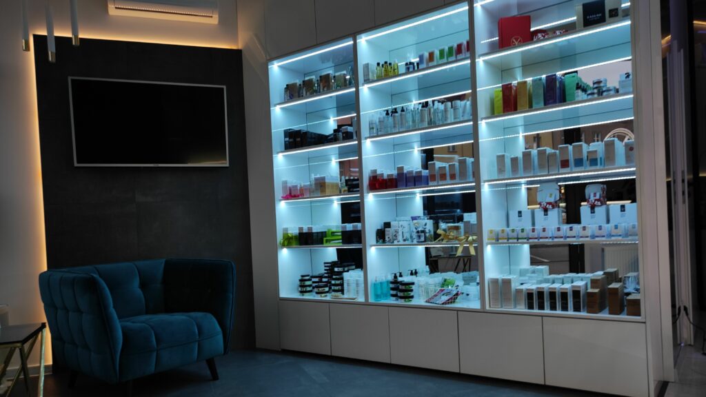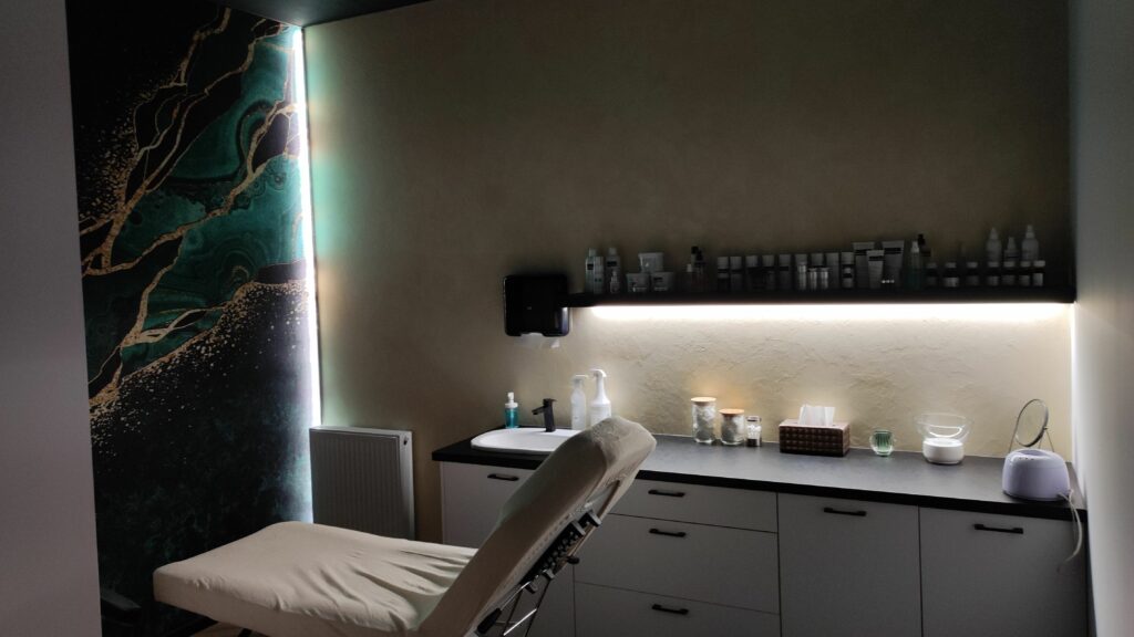 Oprócz głównego oświetlenia sufitowego we wszystkich pomieszczeniach zainstalowane są paski LED, które mają możliwość regulacji natężenia oświetlenia przez moduł RGBW Tree. W recepcji oraz na korytarzu wzrok przyciąga kolorowe oświetlenie RGBW.System audio w lokalu oparty jest na trzech Audioserverach, które zarządzają jedenastoma niezależnymi strefami audio. Klienci doceniają to, że mogą korzystać z usług upiększających słuchając tym samym relaksacyjnej muzyki dostosowanej do zabiegu.