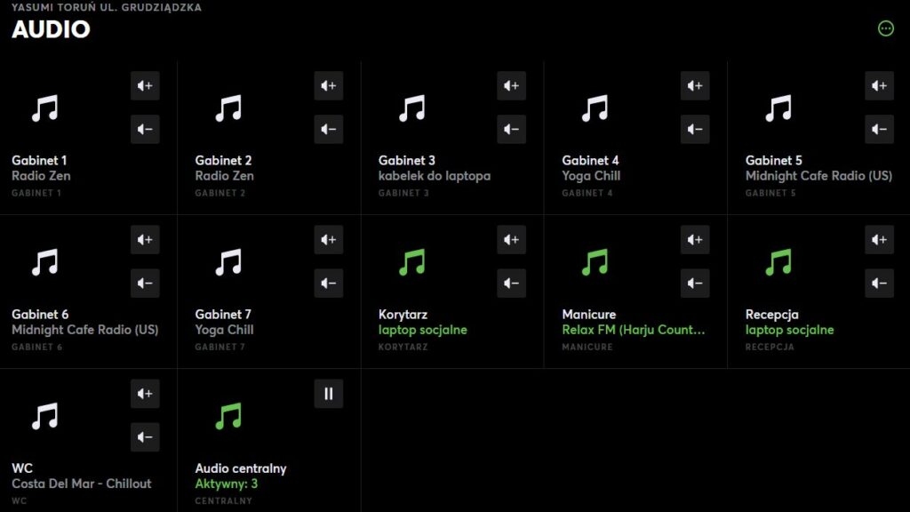 Ilość stref audio i mnogość oświetlenia w lokalu, prosiła się, aby wykorzystać Loxone jako system umożliwiający proste sterowanie w pomieszczeniach oraz centralne zarządzanie przez aplikację.
