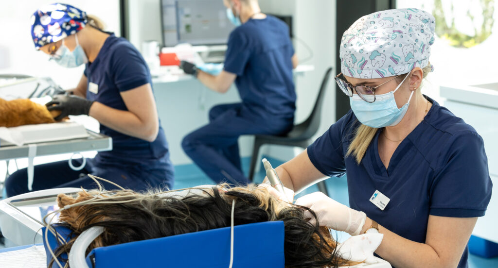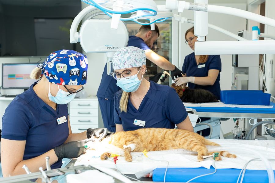 Pełne sterowanie klimatem w budynku zostało osiągnięte poprzez zastosowanie bezprzewodowych siłowników Air na wszystkich grzejnikach. Stały się one podstawowym źródłem ciepła. Dodatkowo w budynku zainstlowano magistralę Modbus łączącą bramki Modbus UTY-VMSX przypisane do 7 splitów Fujitsu oraz 2 centrale wentylacyjne Komfovent z Modbus Extension systemu Loxone. Klimatyzatory Fujitsu poza chłodzeniem w okresie zimowym pełnią funkcję dodatkowego źródła ogrzewania, jeżeli standardowe grzejniki nie są w stanie nagrzać pomieszczeń w określonym czasie.Najważniejszą funkcją systemu jest dostosowanie pracy systemu wentylacji do aktualnie panujących w lecznicy warunków. W trakcie zabiegów chirurgicznych w salach operacyjnych obecnych jest wiele osób, a podczas operacji są używane urządzenia takie jak laser do wycinania tkanek. To powoduje nagłe, duże wzrosty obeności CO2 w pomieszczeniach. System wentylacji reaguje na takie zmiany natychmiast. Czujniki klimatu zostały umieszczone w pobliżu stołów operacyjnych, przy klatkach stanowiących szpital pooperacyjny dla zwierząt czy pomieszczeniu socjalnym i recepcyjnym. Wszystko po to, aby zapewnić najlepsze warunki personelowi lecznicy, klientom oraz pacjentom, których samopoczucie jest równie ważne.