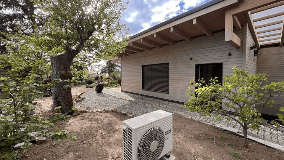 Prevádzka tepelného čerpadla je takpovediac obrátená. Dom je ochladzovaný kompresorom. Táto technológia chladenia sa používa pri tepelných čerpadlách systému vzduch-voda s vonkajšou jednotkou.