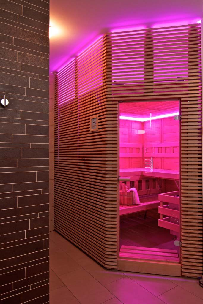 Kombinácia sauny, osvetlenia a vykurovania v celej miestnosti