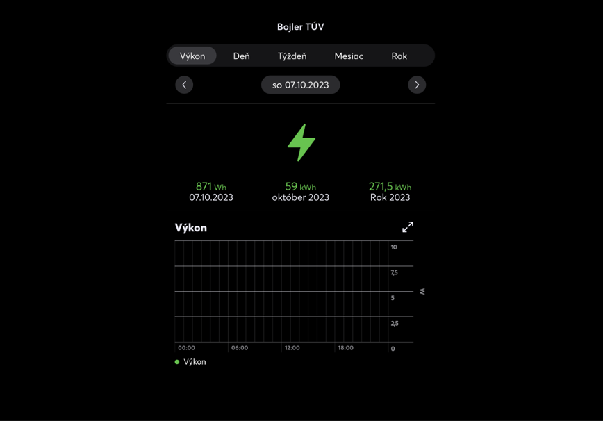 Po zavedení smart meteringu sa nám priemernú spotrebu podarilo znížiť na 36 kWh. (v čase trvania pracovnej doby od 7:00 do 17:00 hod.)