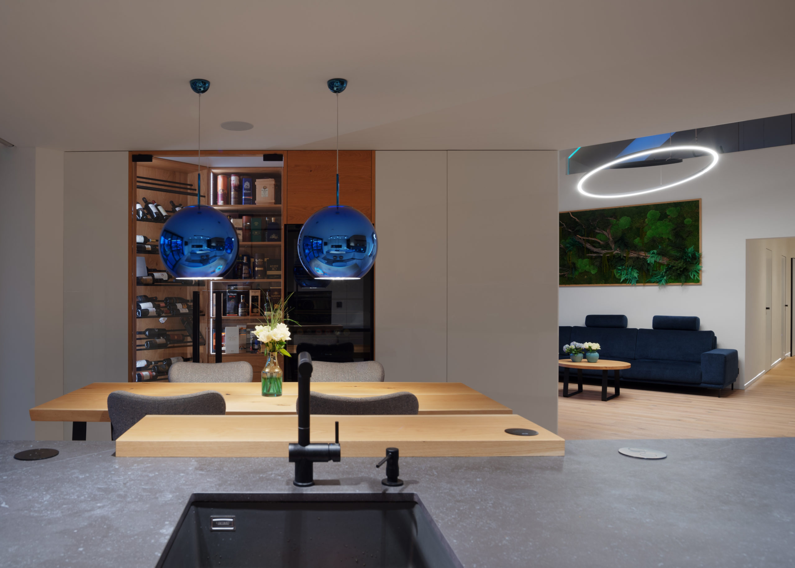 Majitelia si priali jednoduchý vzhľad nielen zvonku, preto aj interiér pôsobí decentne a nadčasovo – bez nadbytočných dekorácií a detailov. Práve jednoduchosť bola pre investora kľúčová. Preto do projektu systém automatizácie Loxone skvele zapadol.