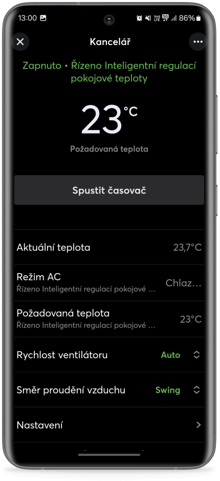 - Štandardné vypnutie chladenia, keď je okno otvorené dlhšie ako napríklad päť minút – vďaka prepojeniu s okenným senzorom. Vyvetrať áno, plytvať nie.
