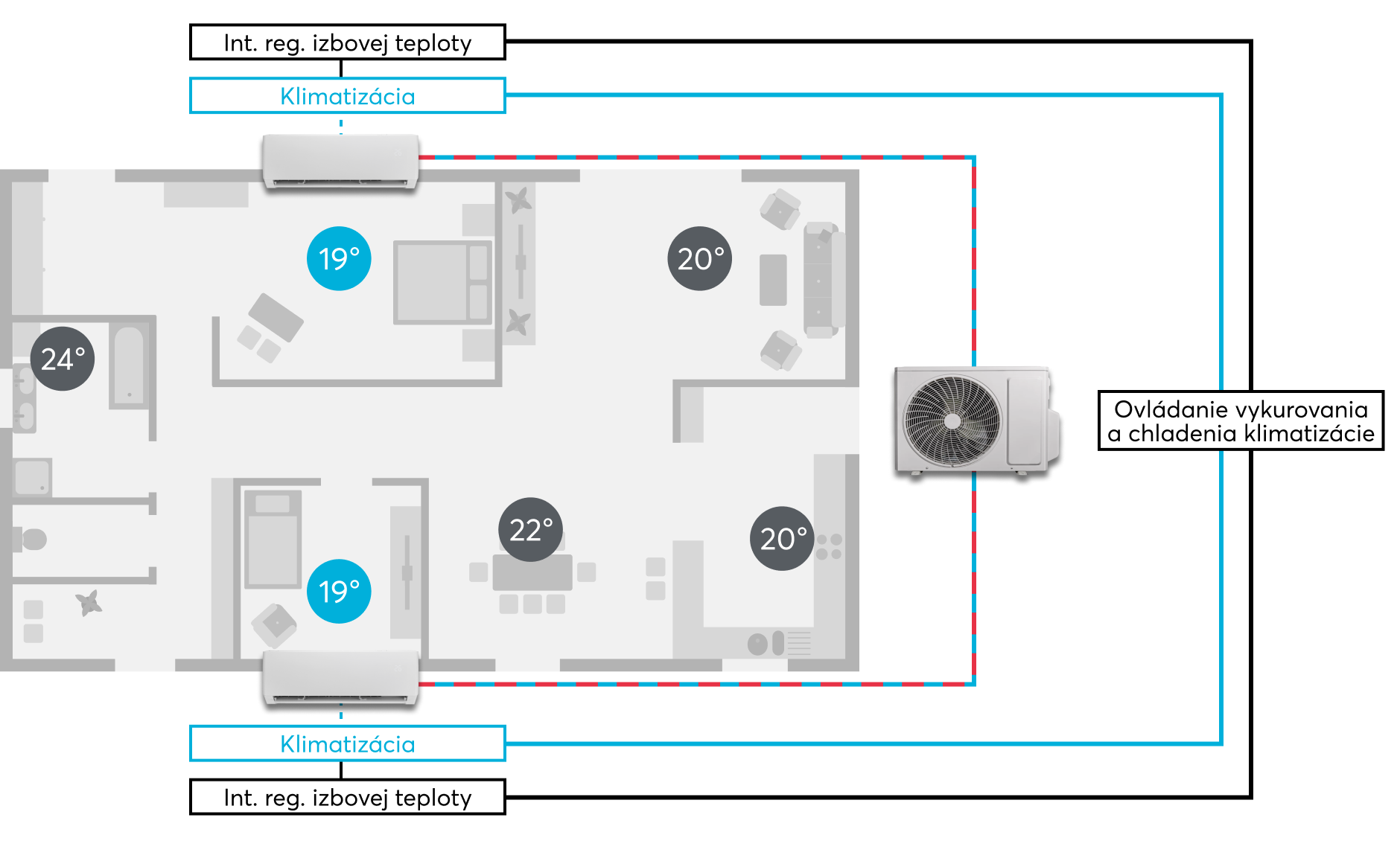Od tejto chvíle môže byť klimatizácia prepojená s blokom Inteligentnej regulácie izbovej teploty. Vďaka tomu sa stane neoddeliteľnou súčasťou automatizovaného systému HVAC.