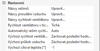 V najnovšej verzii Loxone Configu je možné nastaviť východiskové hodnoty pre rýchlosť ventilátora, prietok vzduchu a cieľovú teplotu. Táto funkcia umožňuje napríklad definovať štandardy v hotelovej izbe. Personál sa tak nemusí starať o to, v akom nastavení hosť izbu nechal. V prípade potreby je možné tiež použiť hodnoty zaznamenané pri poslednom vypnutí klimatizácie.