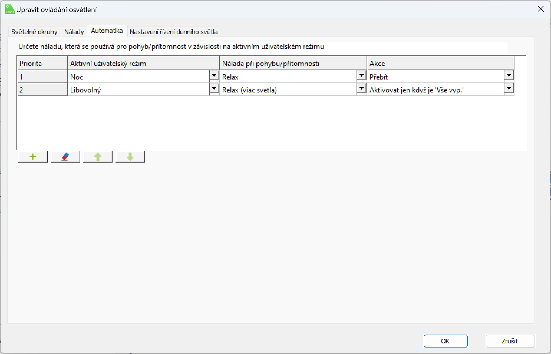 Automatizácia svetelných nálad prostredníctvom užívateľských režimov