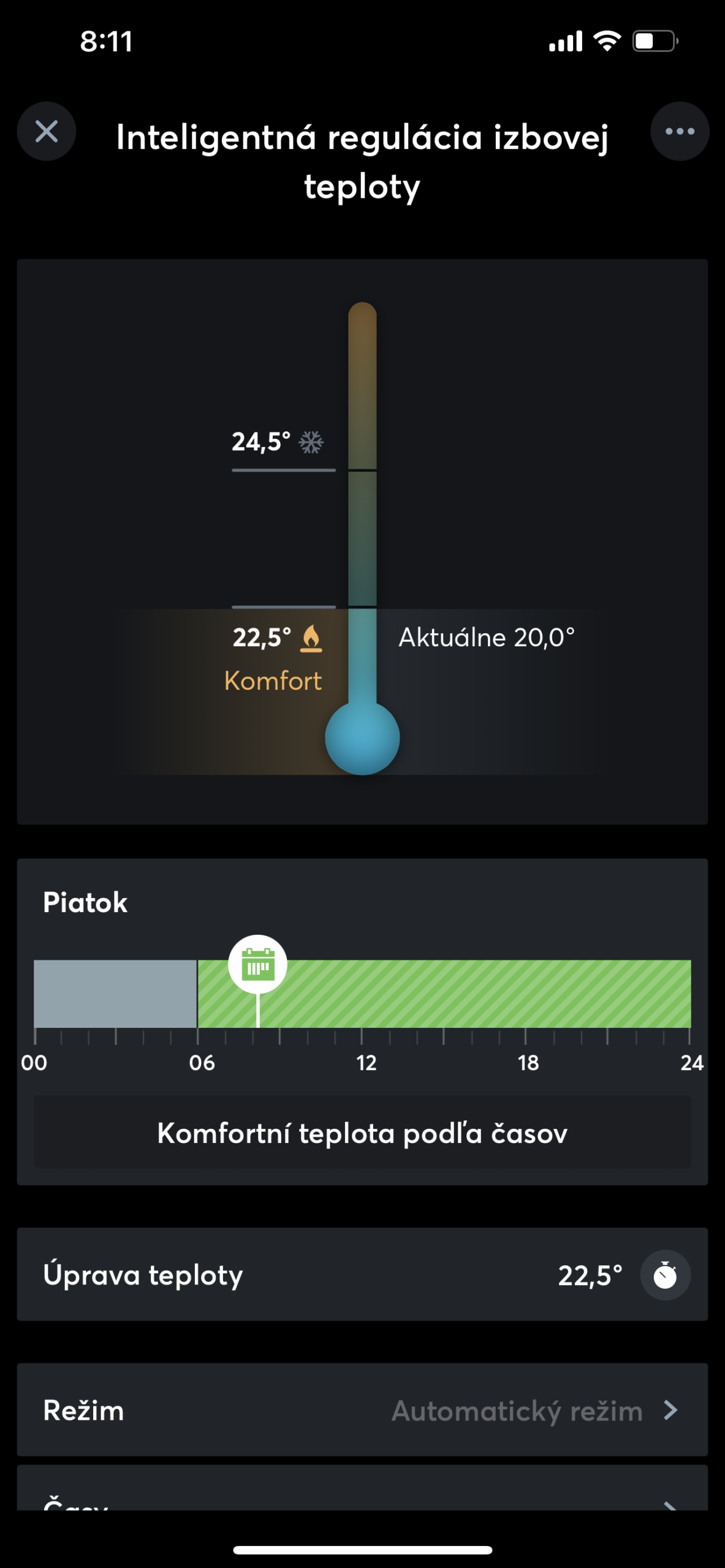Teplotu si môžete kedykoľvek nastaviť pomocou aplikácie. Ak potrebujete teplotu krátkodobo upraviť, stačí vám pár klikov v Loxone App.