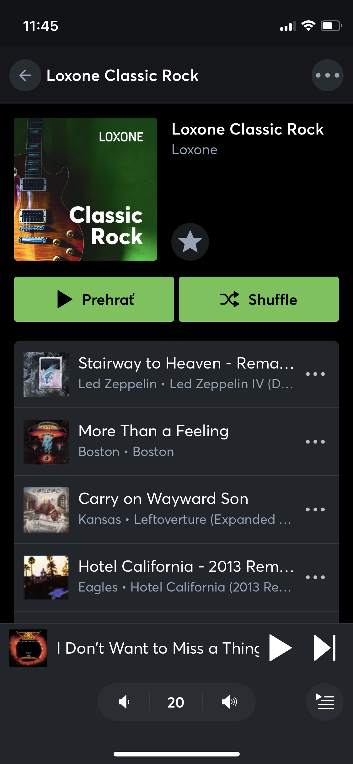 Ovládajte svoj Loxone Audioserver pohodlne pomocou aplikácie: Vyberte si svoj zoznam skladieb, uložte obľúbené položky z miestnosti alebo použite služby, ako sú Spotify a TuneIn.
