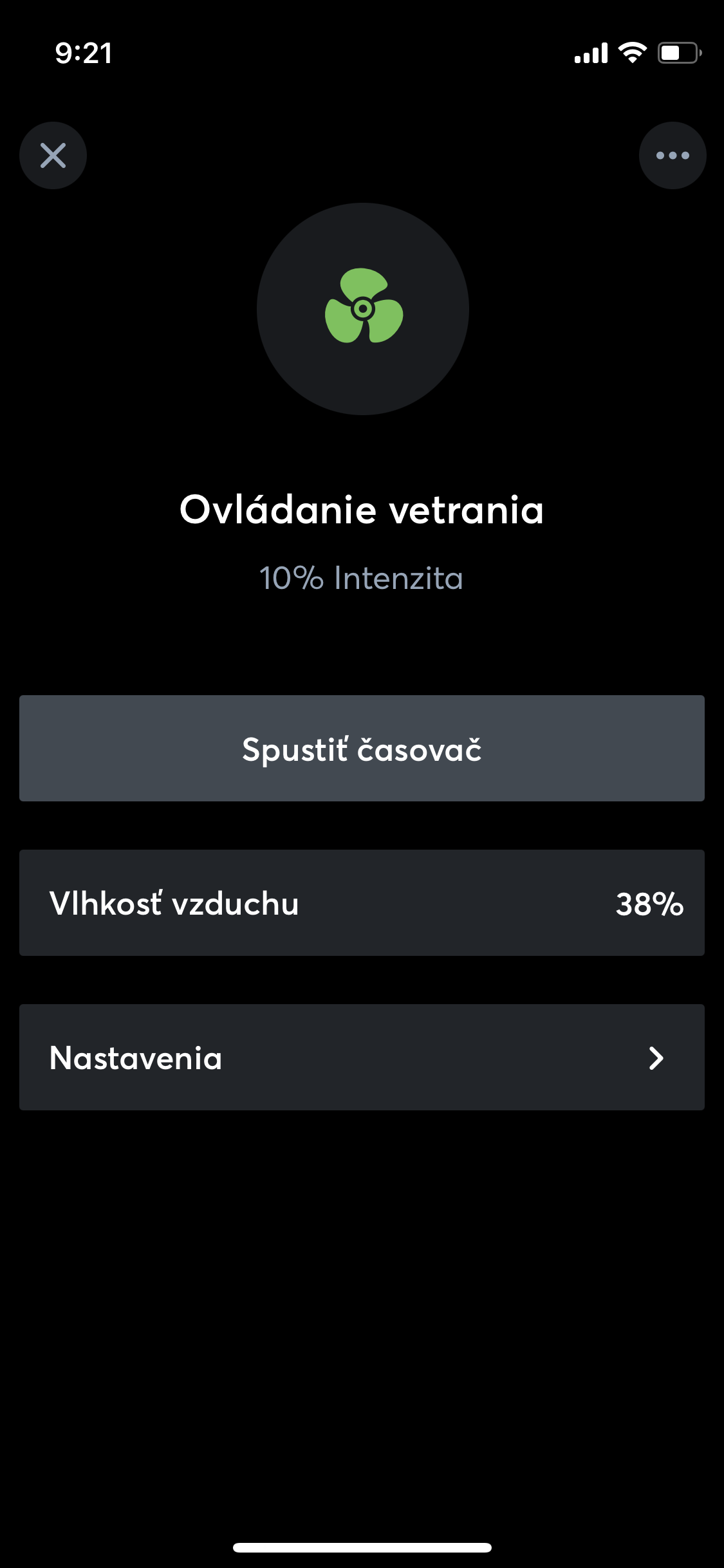 Sledujte aktuálny stav ventilácie alebo si nastavte svoj vlastný režim podľa potreby.